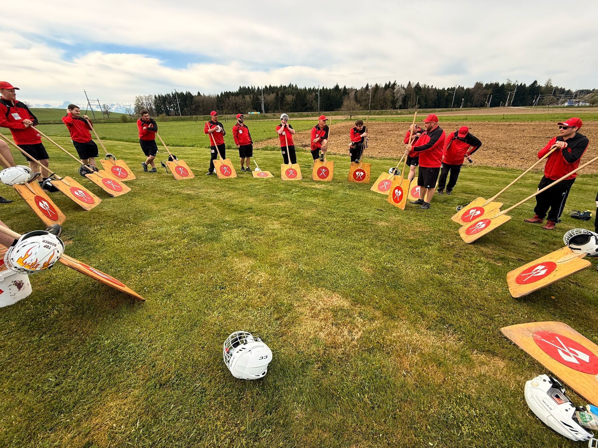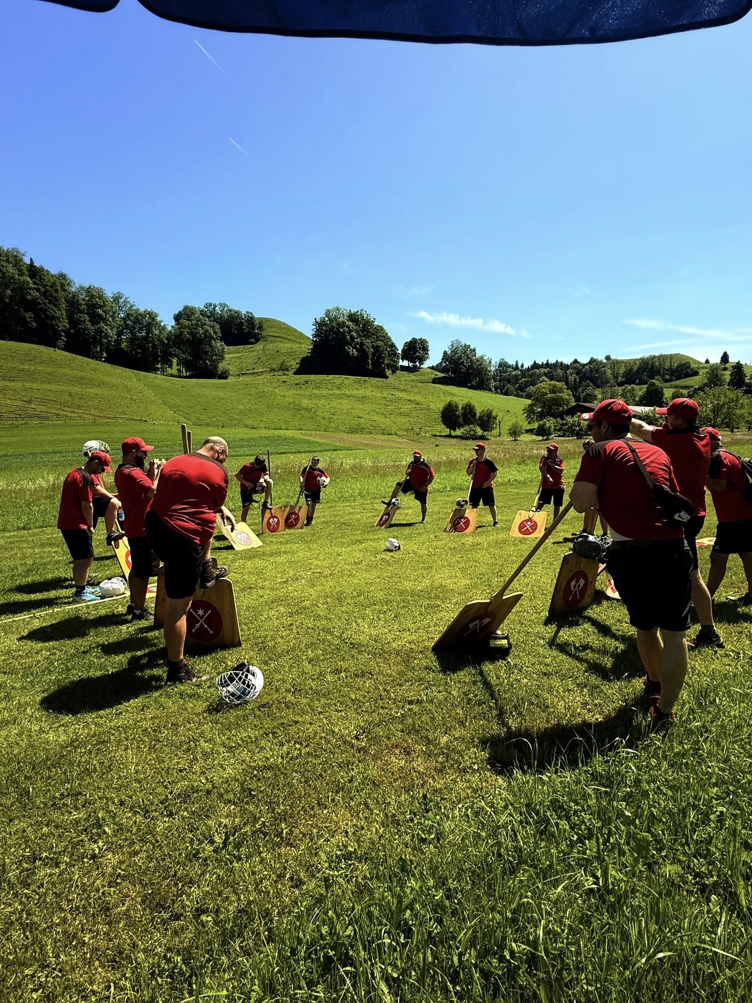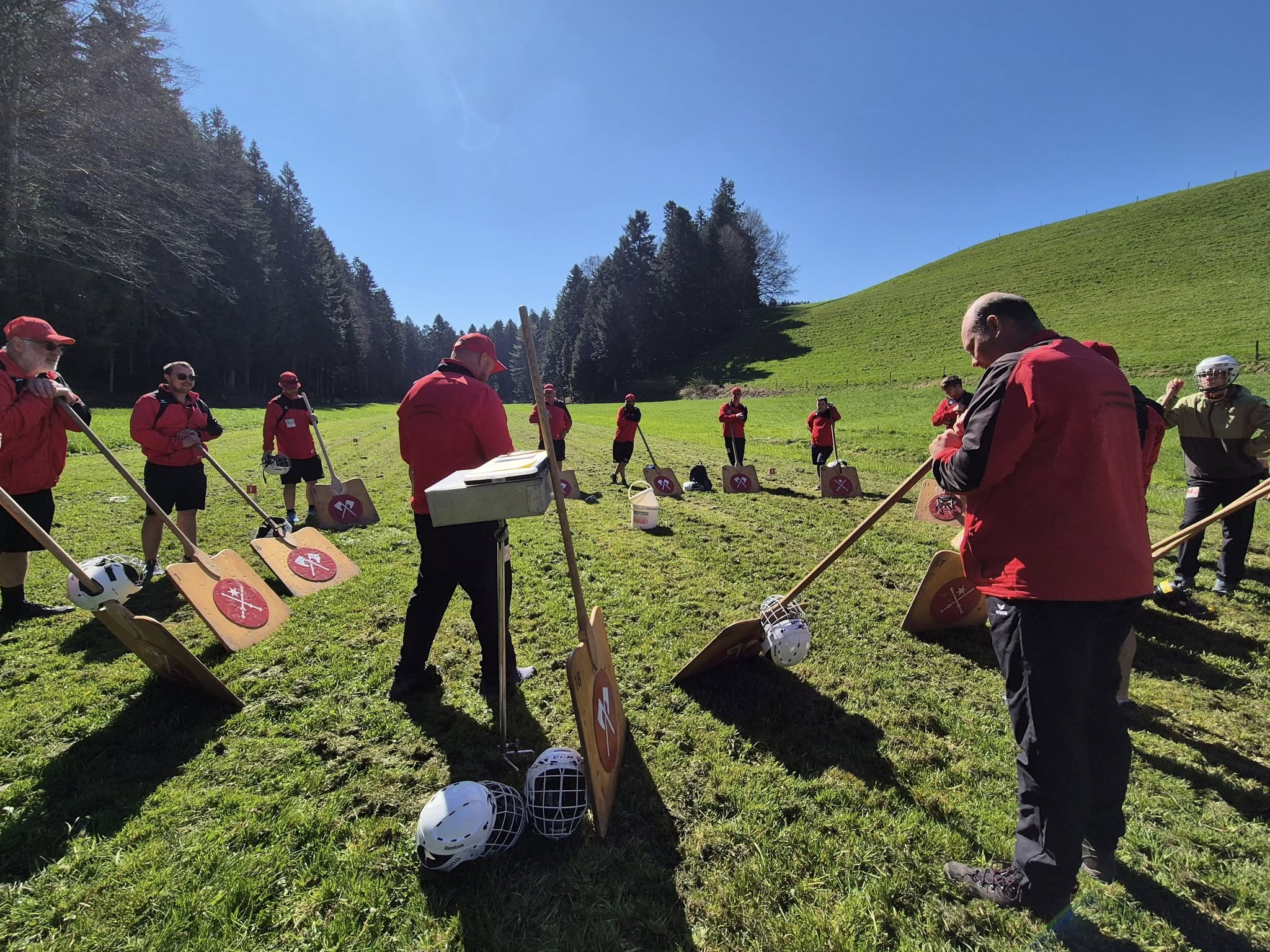 Heute war Derbytime gegen Rüti-Büren in Schwadernau. Bei herrlichem Frühlingswetter erwarteten wir ein spannendes Spiel. Wie bereits in den Spielen zuvor stezte noch vor Spielbeginn der Westwind ein und erhöhte damit die Spannung bei der Riesarbeit.